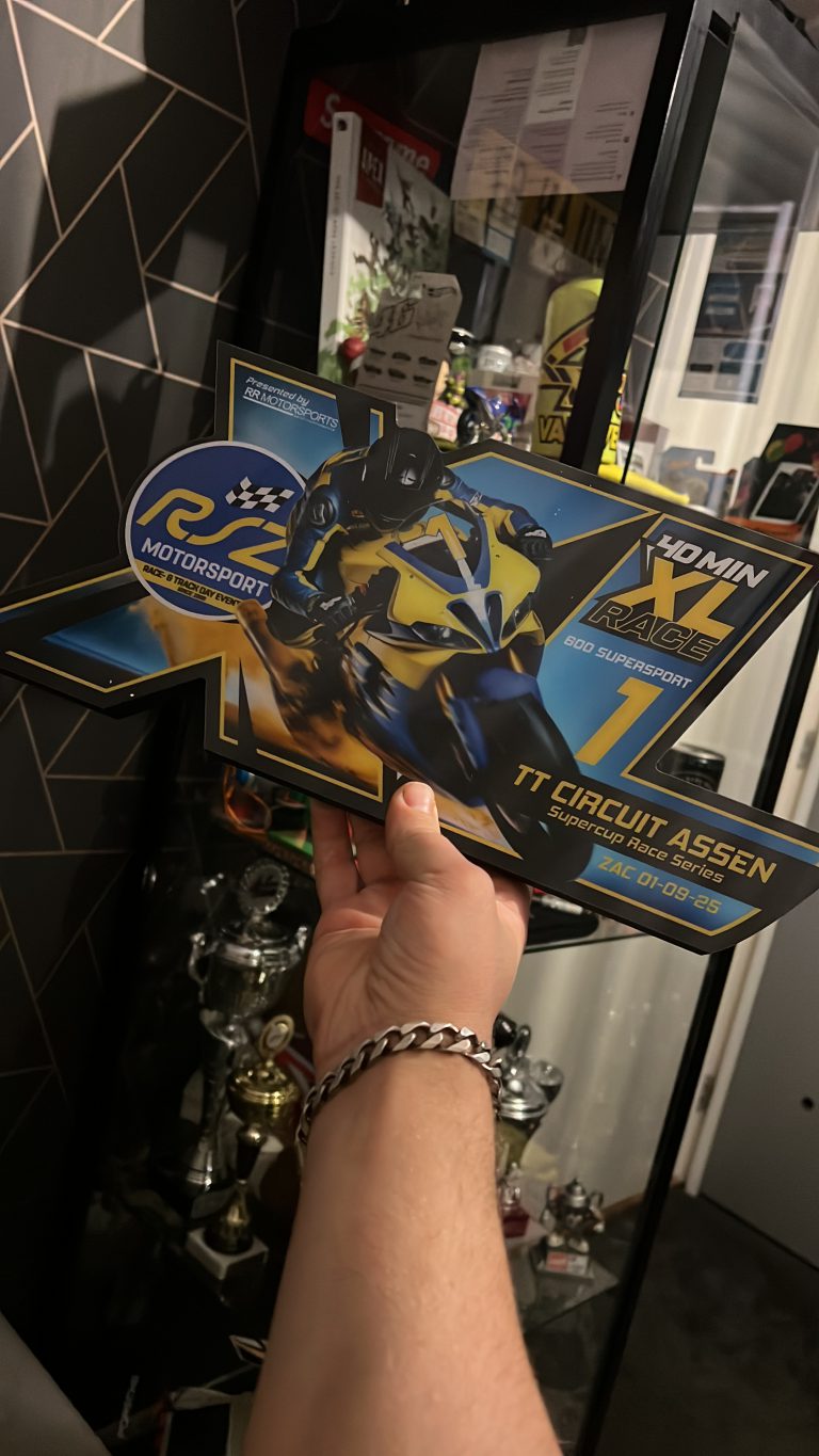 Na mijn pitstop reed ik voor een paar rondes mooi in niemandsland. Hier en daar kwam ik een aantal rijders tegen waar ik mee k te battlen maar hierdoor verloor ik steeds meer tijd op P1. Dit gat was inmiddels bijna 30 seconden en met nog ongeveer 15 minuten te gaan had ik een behoorlijke klus om te klaren. Helaas kreeg ik halverwege mijn tweede stint weer last van kramp, zo erg dat 2 keer terugschakelen voor een bocht bijna niet meer lukte. Maar ik moest door, dan maar wat minder schakelen. Ik hield mijn hoofd laag en wist de wedstrijd op een steady pase uit te rijden waardoor ik nog net op P2 wist te finishen. Een ok result, na wat er allemaal speelde tijdens de wedstrijd.